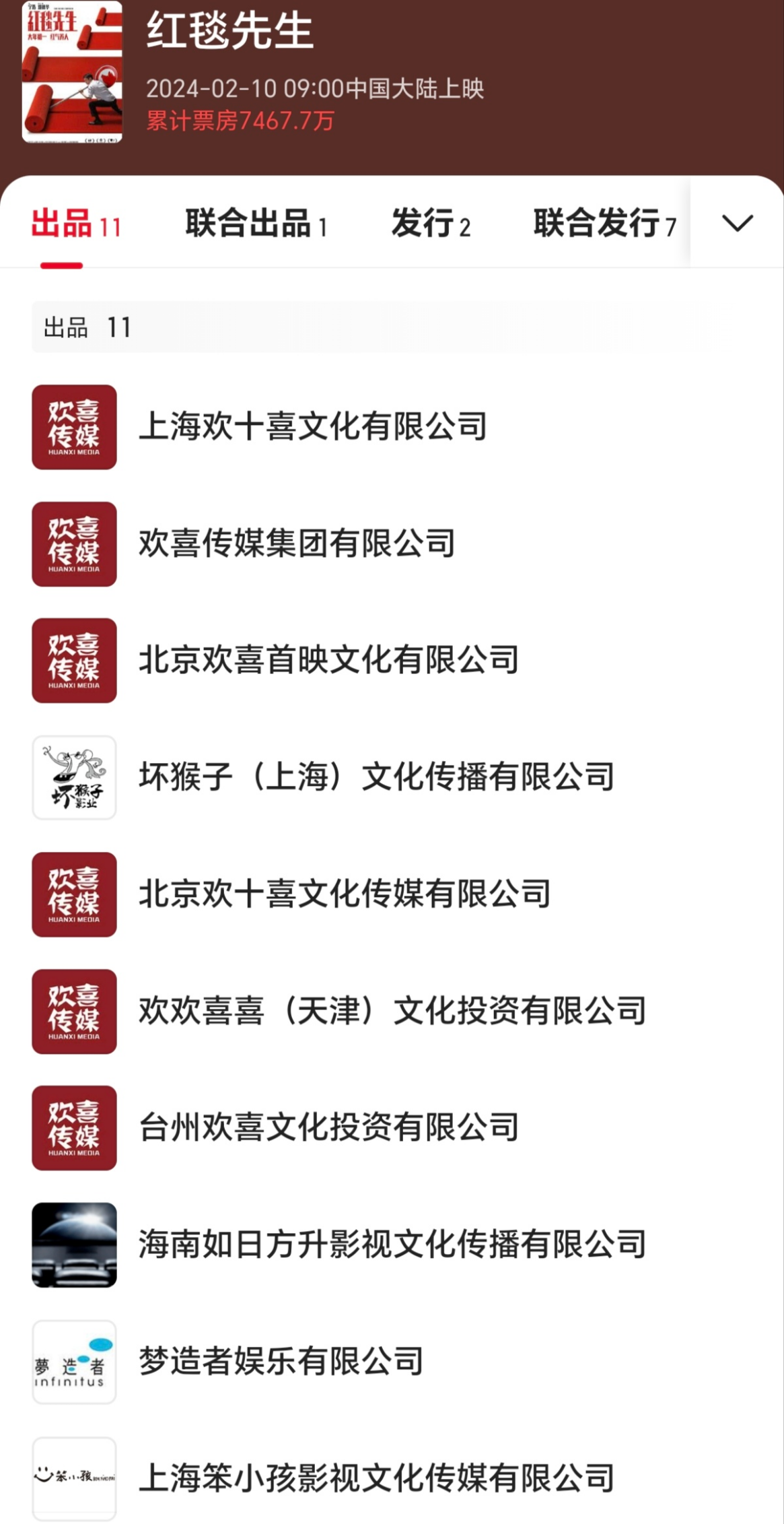 这部片的主控出品方是港股上市公司欢喜传媒,宁浩的坏猴子影业,刘德华的梦造者娱乐也是主要出品方。