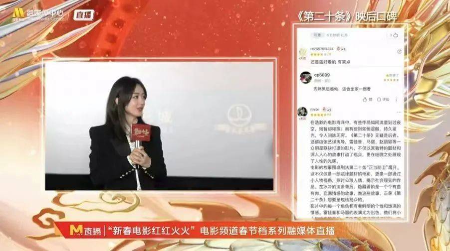 大年初一到初四期间,电影频道连续四天推出路演直播系列特别策划,将大众反馈作为核心呈现内容,无论是“全国38城百名观众测评”、“实时口碑墙”、“主创读评论”等版块,还是“M观影团”全国9城10场线下观影活动,都专注做口碑发酵。同时,《今日影评》也推出了16期特别节目,从影评人分析看点、主创谈创作思考、特别观众谈影片共鸣三个维度,挖掘影片和大众的共鸣点。