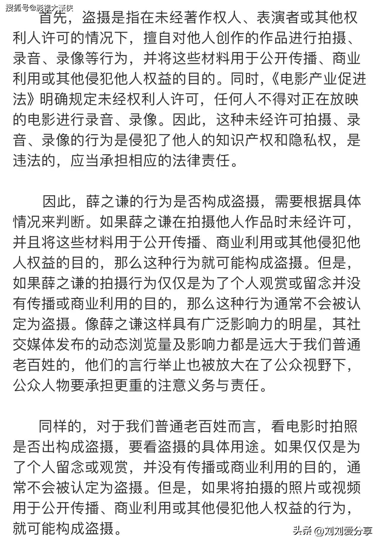 所以薛之谦的行为是正当行为,但是若我们没有被版权方授权,随意传播电影片段,则是万万不可的。