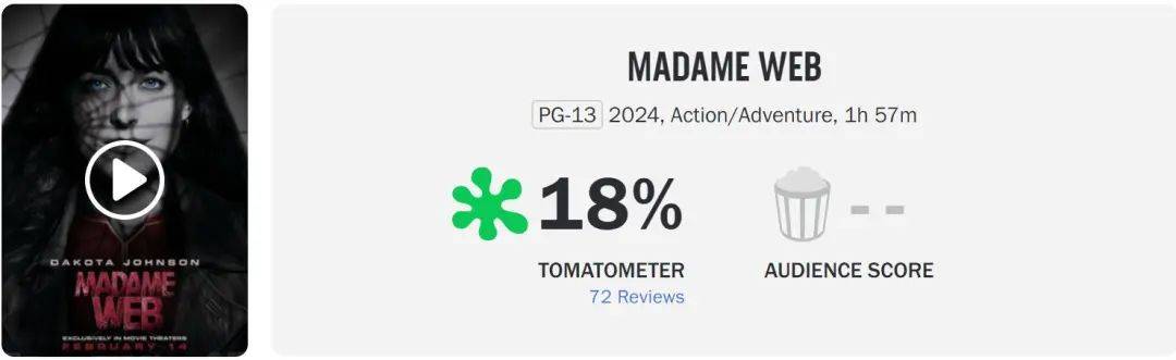 原标题:《蜘蛛夫人》口碑又搞砸了!烂番茄仅高于《暗夜博士》