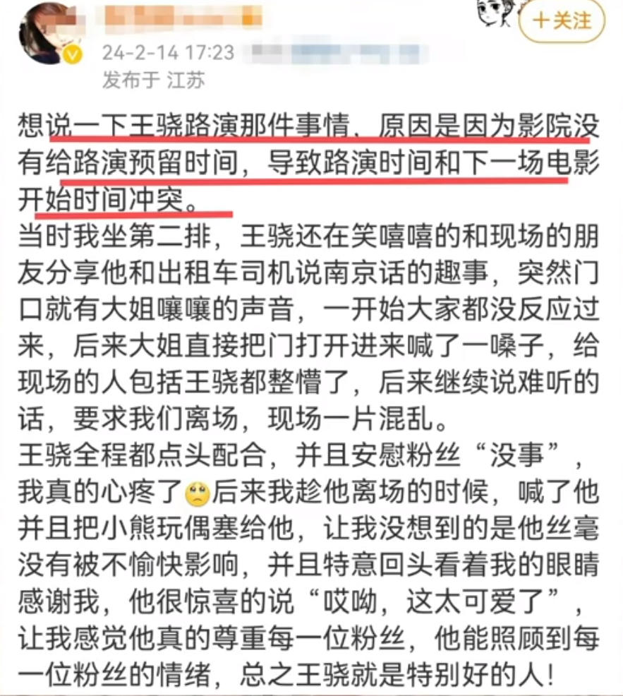 这位观众还透露王骁全程都点头配合,并安慰粉丝说“没事”,他真的尊重每一位粉丝,也尽量照顾到每一位粉丝的情绪,确实特别好的人!