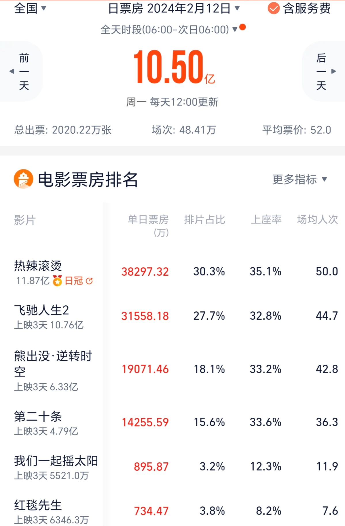 张艺谋的《第二十条》受《热辣滚烫》和《飞驰人生2》挤压,以及初一、初二上座率偏低,排片略有下降,但初三该片上座率开始和《飞驰人生2》《熊出没·逆转时空》看齐,日票房1.425亿元,较初二的1.413亿元没有再下跌,表现坚挺。
