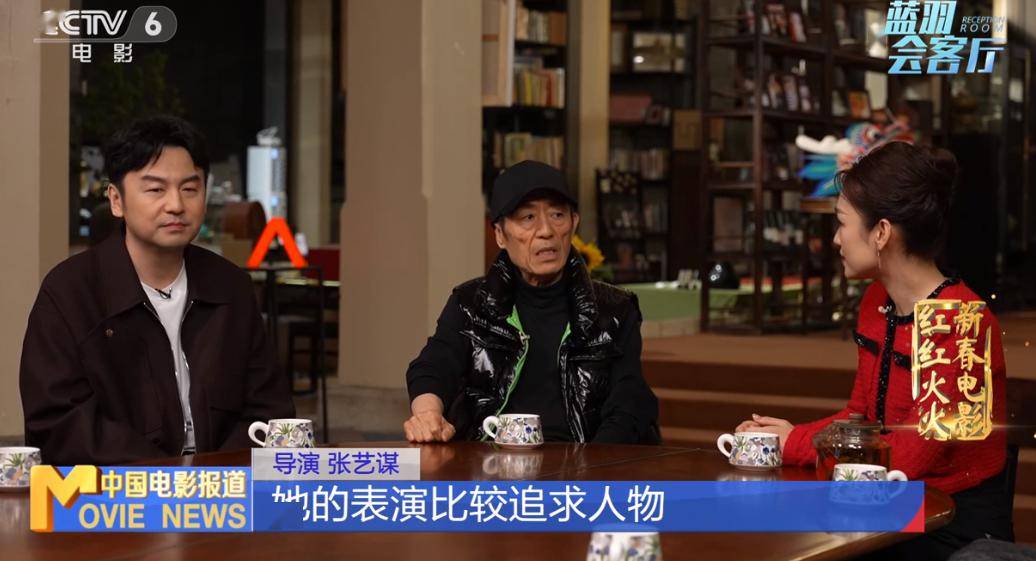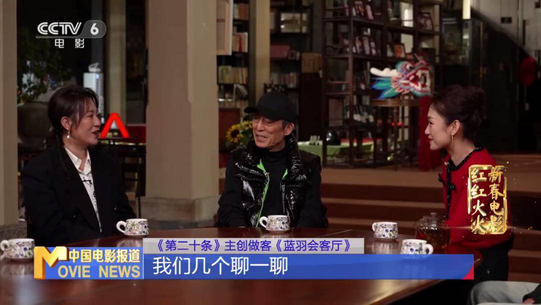 “新春电影红红火火”春节特别节目,电影《第二十条》导演张艺谋携演员雷佳音、马丽、高叶、刘耀文、阿如那走进了《蓝羽会客厅》。