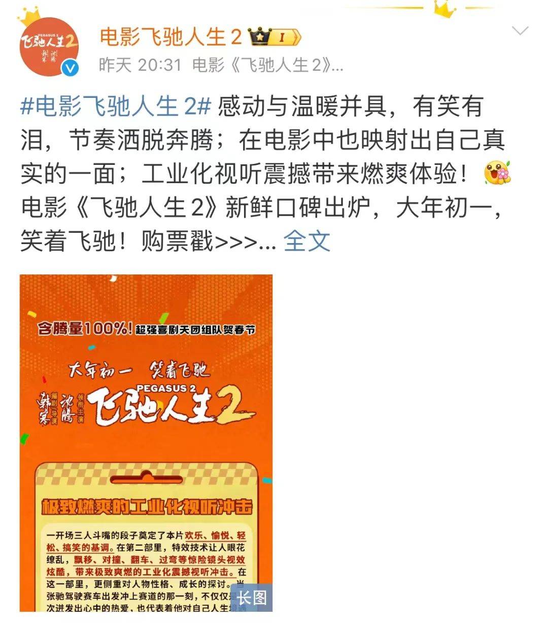 2月5日《飞驰人生》开启大规模首映,后续宣传方向主要朝口碑发力,明星、业内、媒体都和普通观众都一齐释出较好口碑。最明显的评价是“好于第一部”,次日票房预售增速明显。