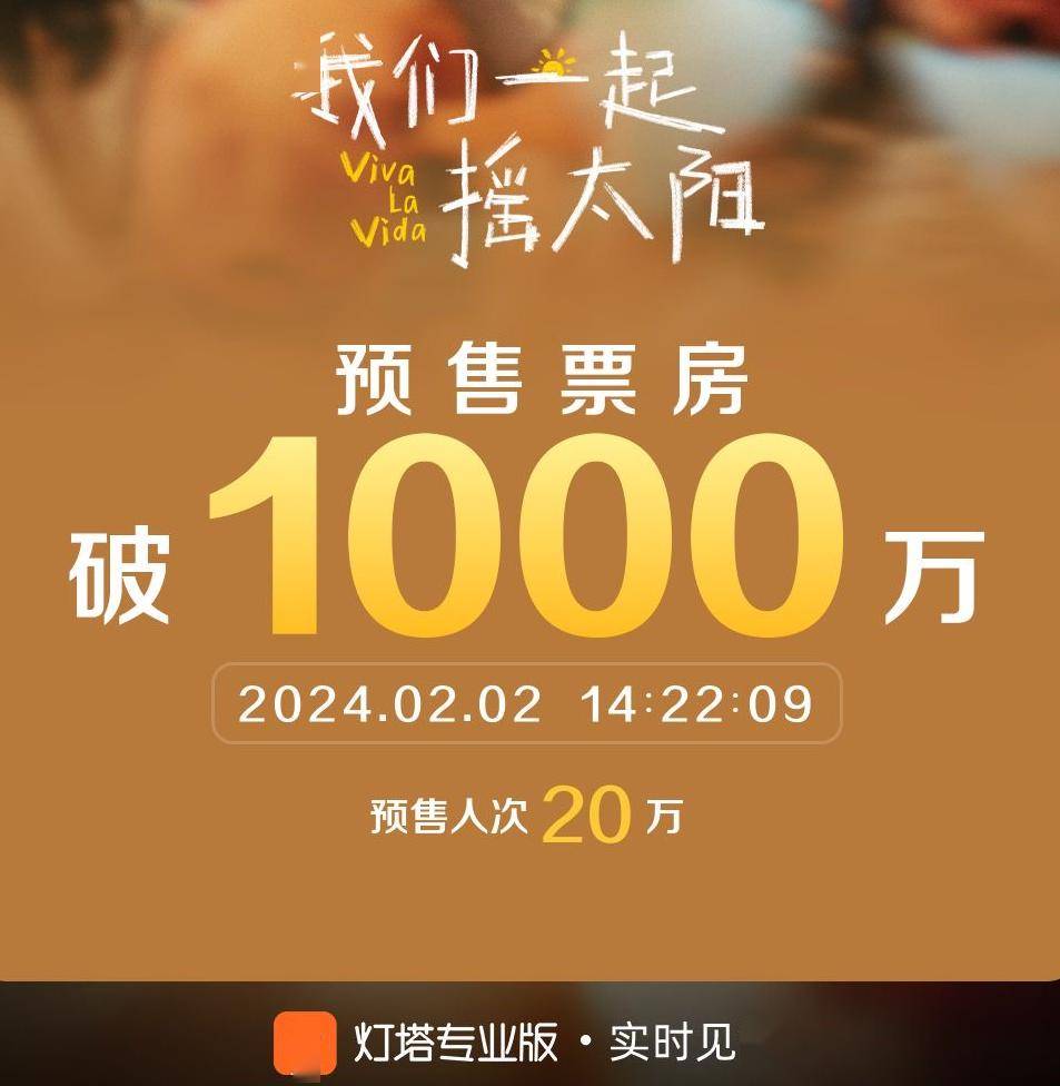 继2015年、2020年之后,韩延导演的“生命三部曲”迎来最终章——《我们一起摇太阳》,让许多观众充满了期待。根据票务平台的统计数据来看,截至2月2日《我们一起摇太阳》预售票房已突破一千万元,预售人次也已超过20万人。