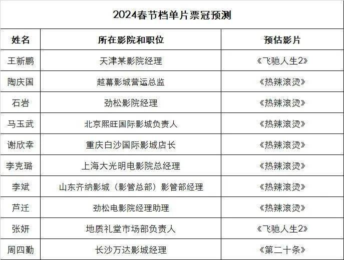 在此,《中国电影报道》微信公众号也向十多位院线从业者发出了春节档前瞻调查问卷(部分问卷匿名)。让我们一起看看他们眼中2024年春节档电影市场的热点与看点吧!