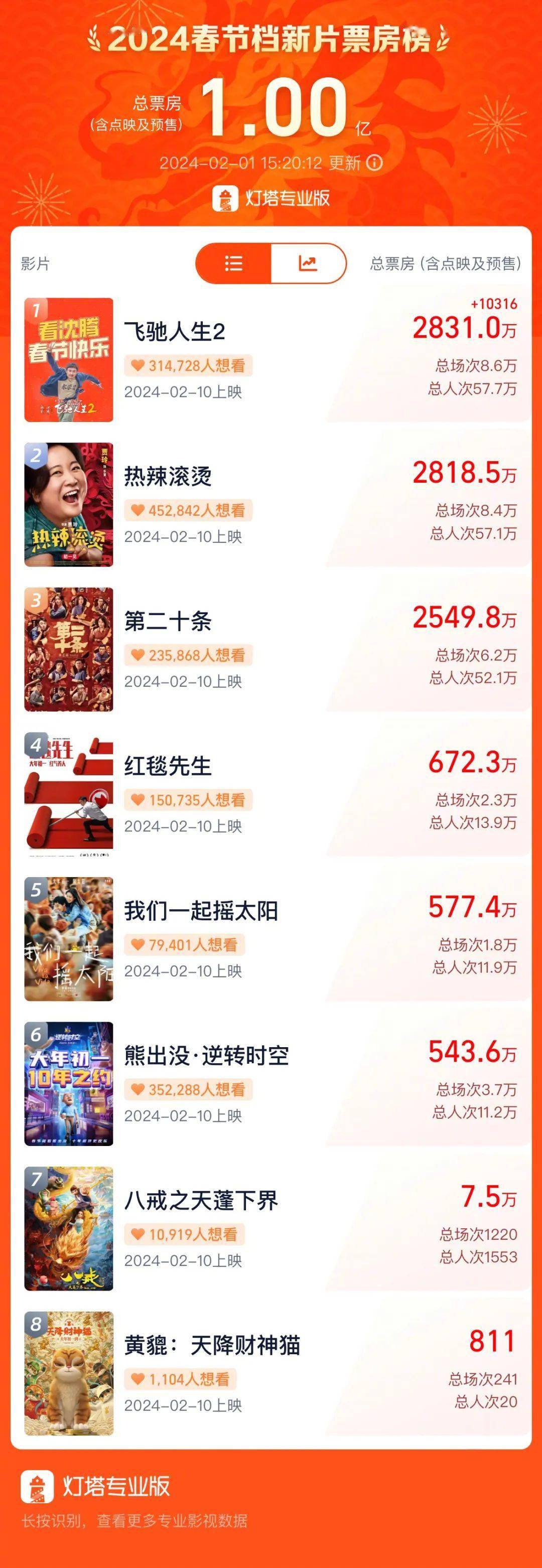2024年春节档新片预售票房破亿