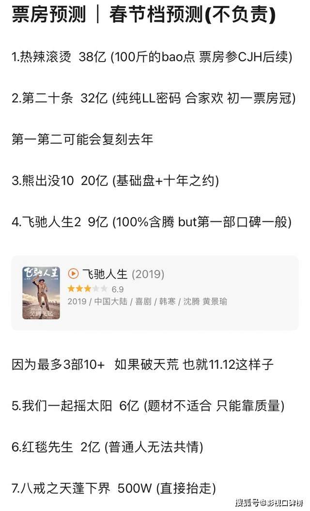 眼看着距离春节剩下一个礼拜的时间,春节档的各路预测逐步出炉。