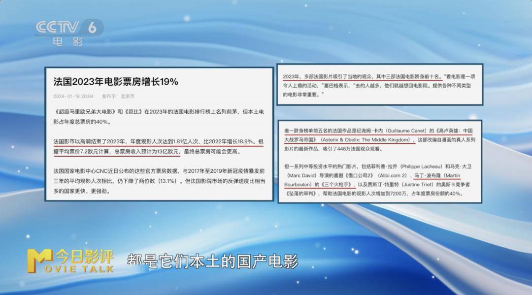 但目前唯一的一个还不错的一个信号,可能是在法国的电影市场。