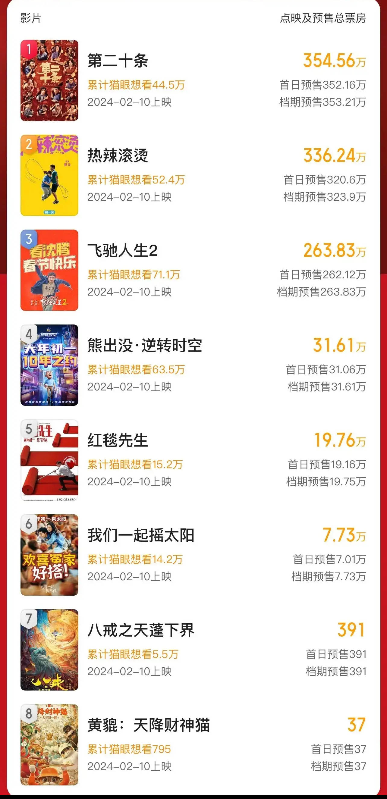 原标题:春节档新片预售总票房破千万 《第二十条》暂列第一