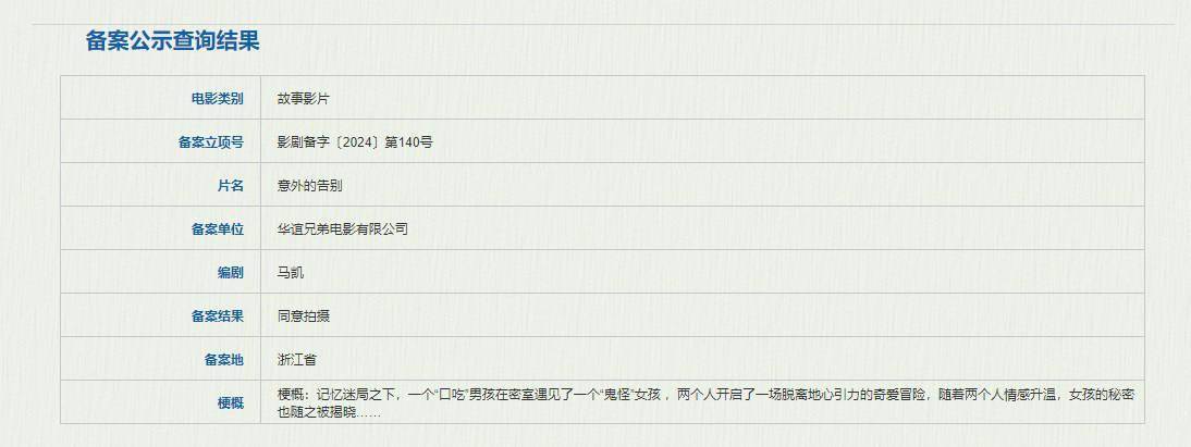 原标题:《意外的告别》立项 口吃男孩遇到“鬼怪”女孩