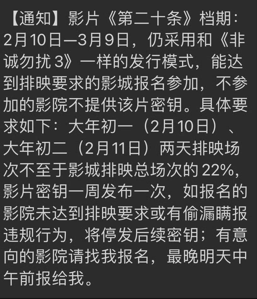 原标题:春节排片战打响?《第二十条》等要求22%排片,《红毯先生》:让观众选择