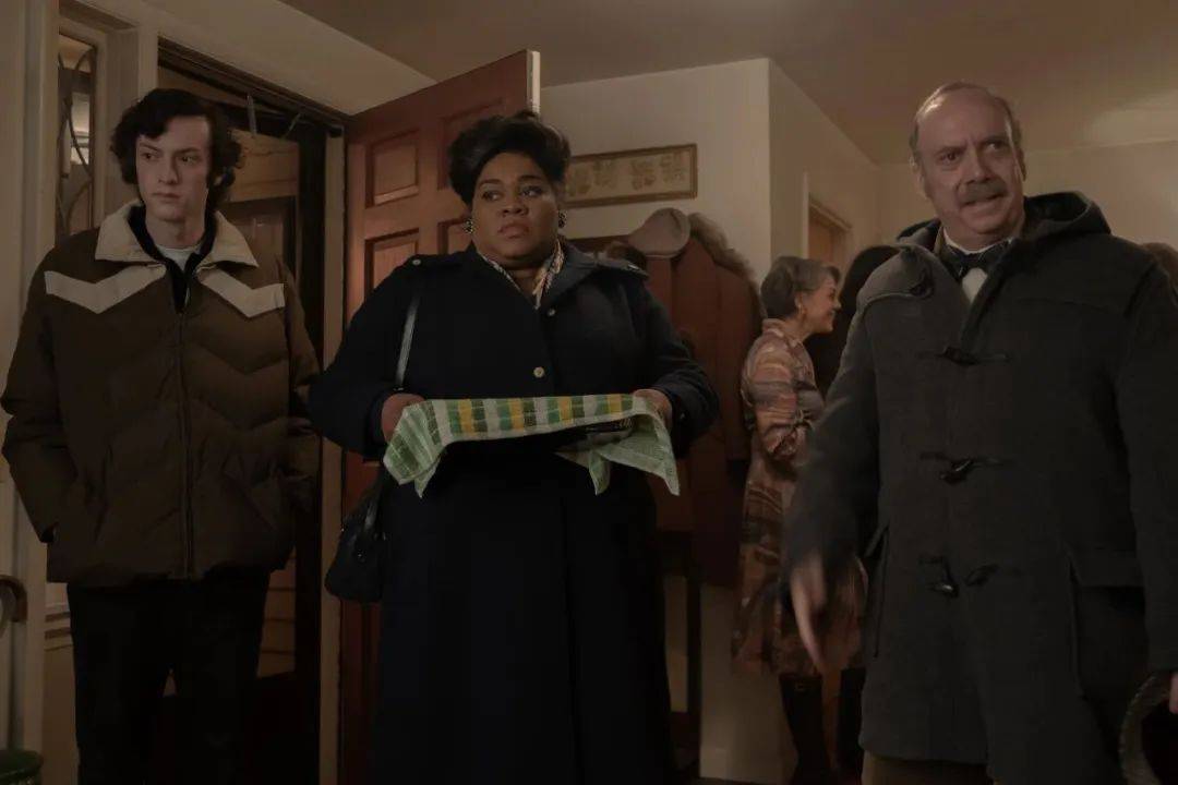 三位主角之间的困窘、苦痛和畸零,集合在这个外有乐景,内里只有哀情的“临时家庭”之中,只能相互舔舐,抱团取暖,相互抚慰和救赎。在此期间的化冰和交流,增进的不止是师生间对彼此的认知和体恤,还包括对自己高贵品质的找回:奉献的精神,爱的能力。所以发展到最后,自然就有保罗为保护学生揽下责任的英雄举动。