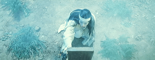徐克特意用上移动镜头,摄影机不断怼到演员的面前,以此制造惊悚与恐怖的感觉。