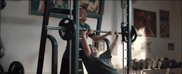 到目前为止,也就一个引体向上,一个卧推。两者的笑料,还是同一类型。