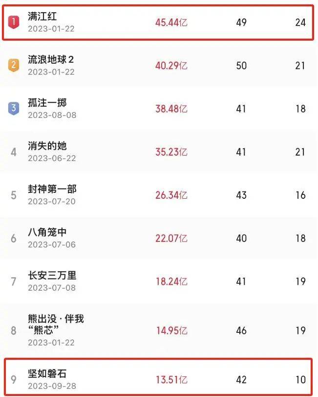 《坚如磐石》在国庆档上映,斩获13.51亿票房,闯入年度票房榜前十。