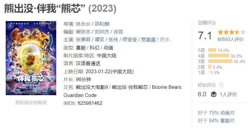 去年的《熊出没·伴我“熊芯”》豆瓣高达7.1分。