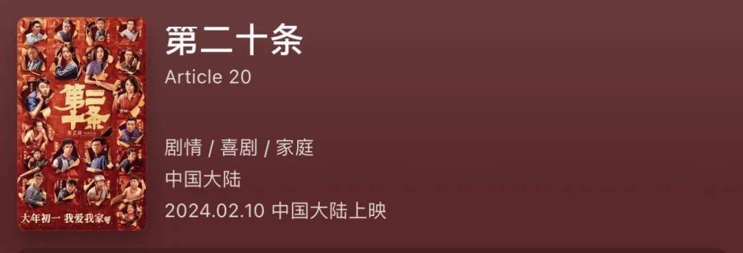 张艺谋导演的《第二十条》英文片名是“Article 20”,属于“直译”,就是在英语翻译中完全保留汉语词语的意义,这种译法非常简洁明了。