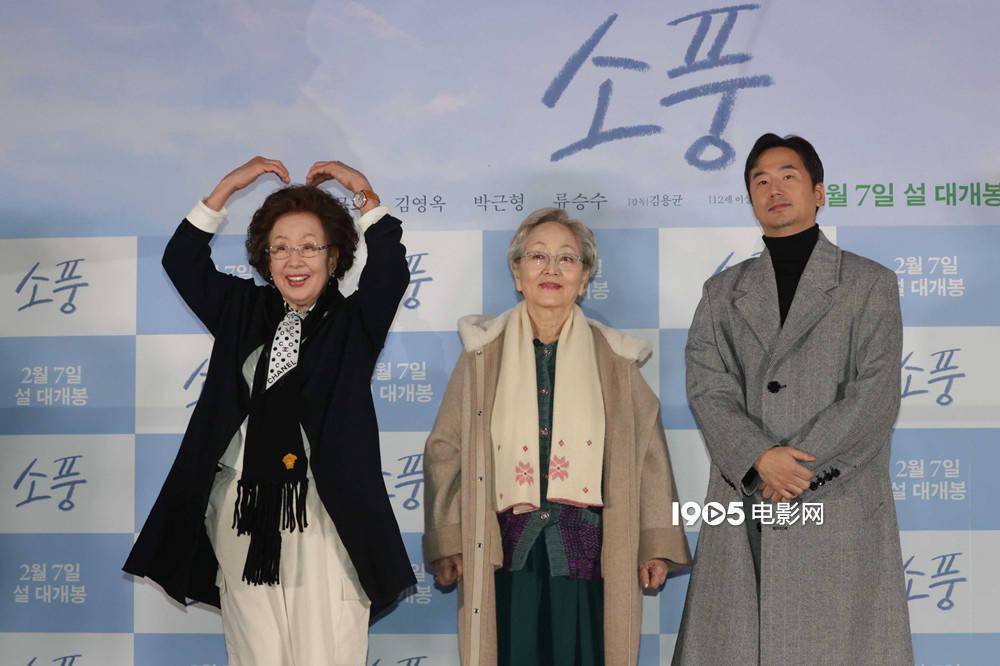 1905电影网讯当地时间1月23日,韩国首尔,电影《郊游》媒体试映会。影片主演、、导演等出席活动。除了出席试映会的罗文姬(82)和金英玉(86),影片还力邀了韩国老牌演员(83)出演,三位主演的年龄加起来有251岁。