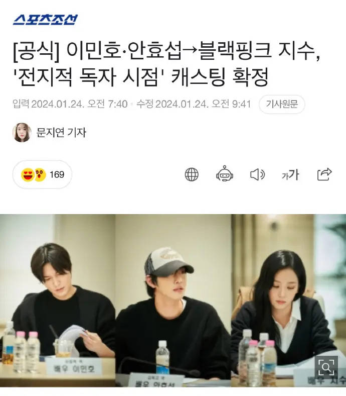 原标题:阵容养眼!李敏镐金智秀安孝燮主演韩片《全知读者视角》曝围读剧本照