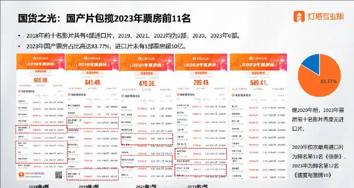原标题:2023年国产电影包揽票房前11名 占比高达83.77%
