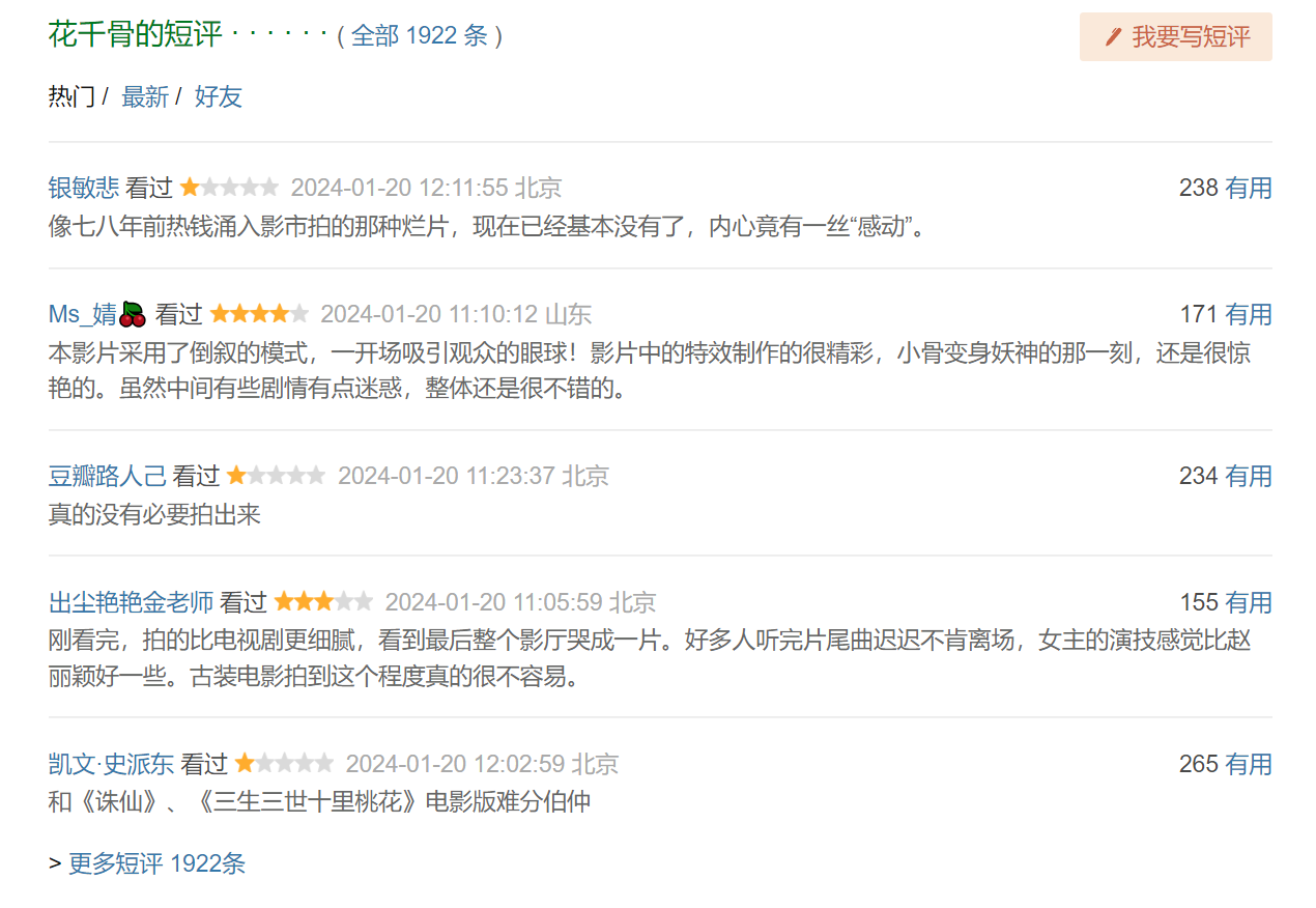 《花千骨》是2024开年以来扑的最惨的电影,没有之一。