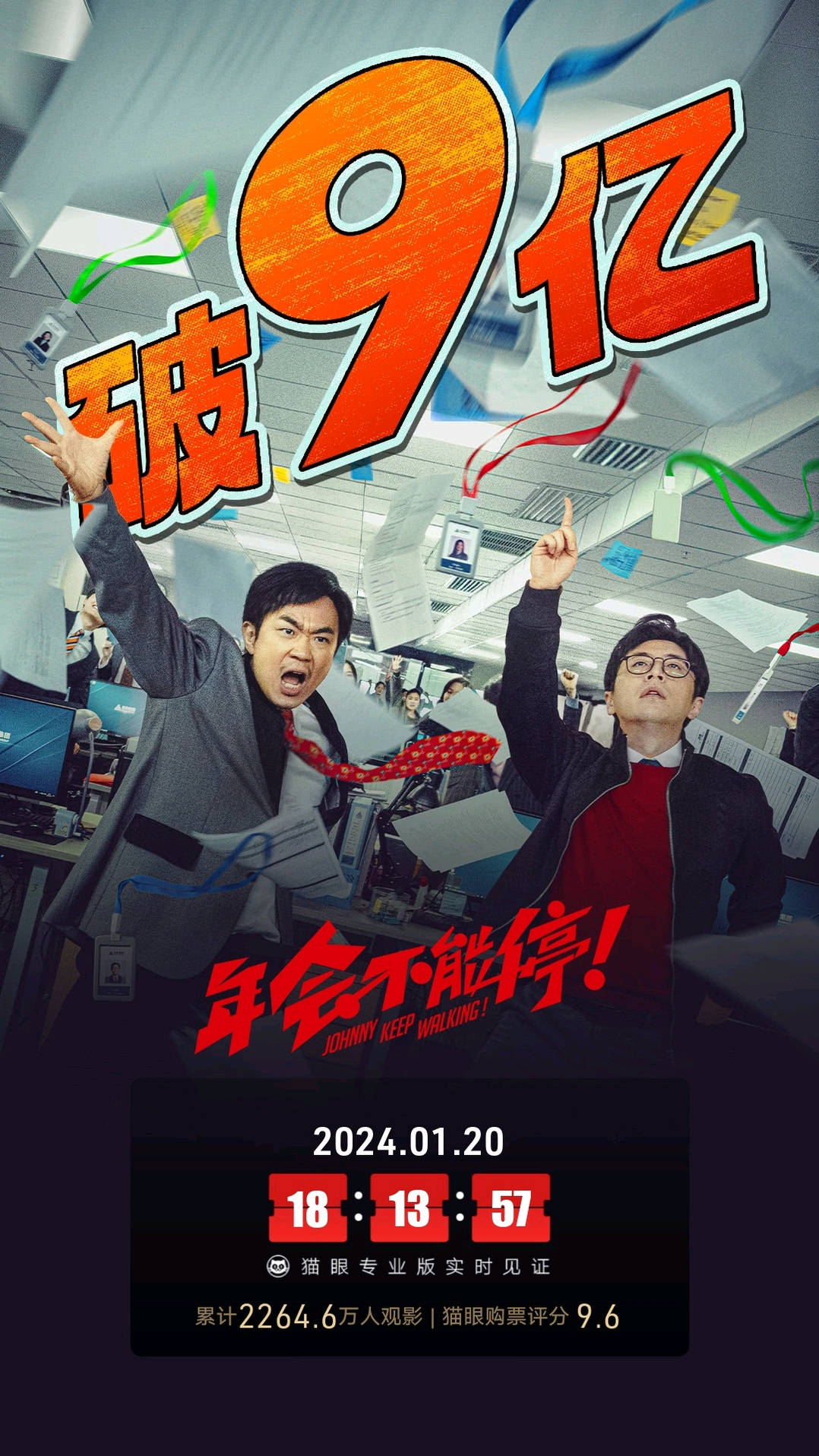 职场喜剧电影《年会不能停!》第四周收1.77亿夺冠,上映24天累计9.51亿;