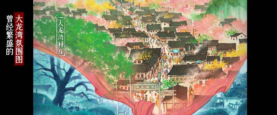 这些角色以鲜明的色彩着装,为大龙湾这片“世外桃源”点缀了色彩。国画与动画,两种艺术形式交相辉映。