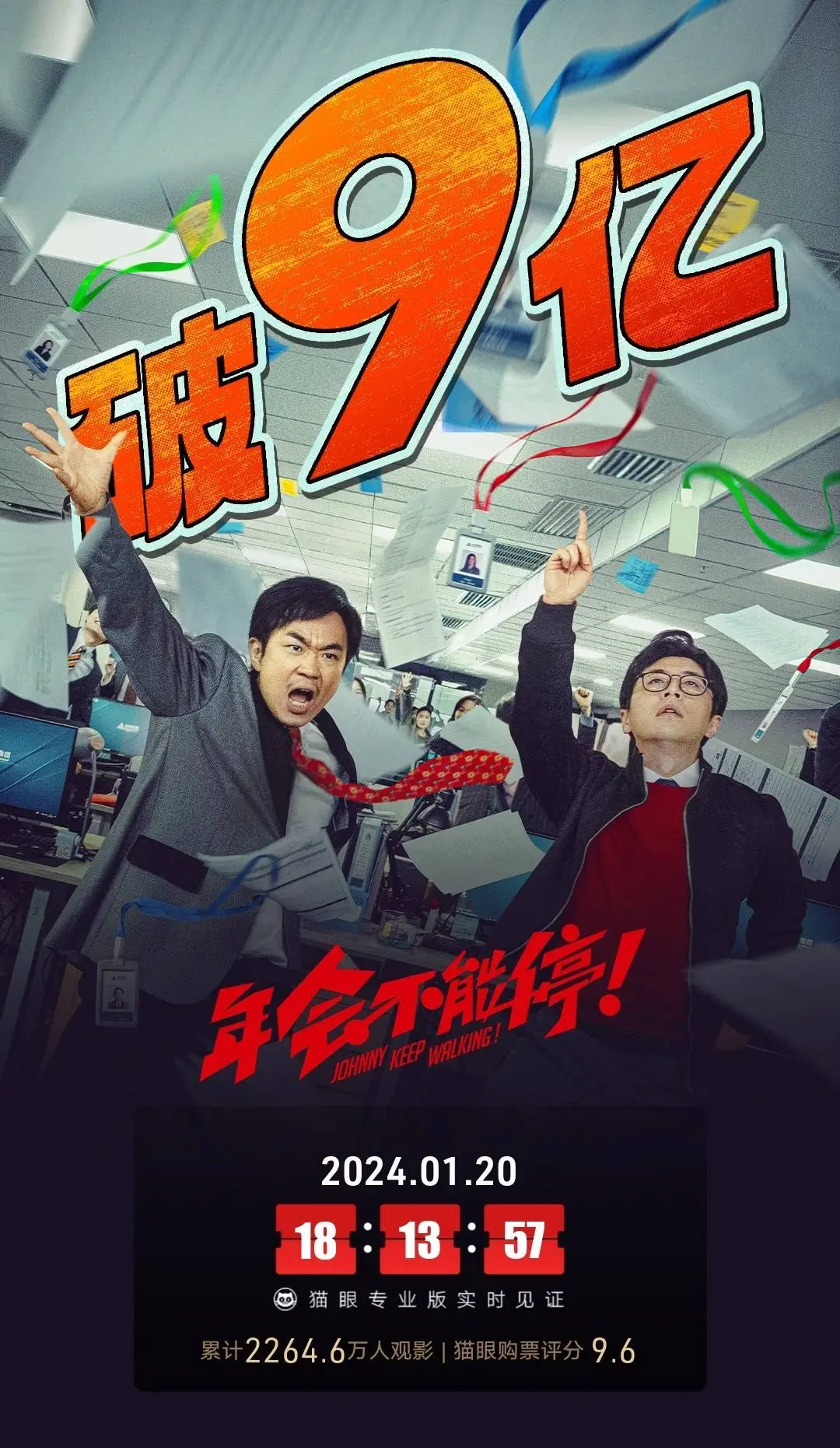 搜狐娱乐讯 据猫眼专业版数据,截至1月20日18时13分,电影《年会不能停!》上映23天 ,总票房破9亿,累计2264.6万人观影。