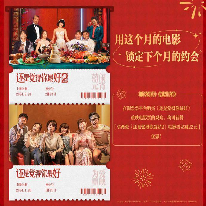 影片在此前上映时就收获高口碑,豆瓣评分一度涨至8.1,内地票房突破1亿,登顶中国香港影史港产喜剧票房冠军,整体市场表现超出预期。续作《还是觉得你最好2》也将于2月24日元宵节上映。
