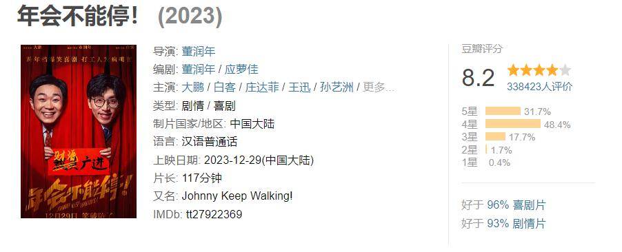 不可否认的是,优质的原创作品同样可以收获不错的成绩,来自自编自导的目前豆瓣评分8.2,截至1月15日票房达到7.89亿元。
