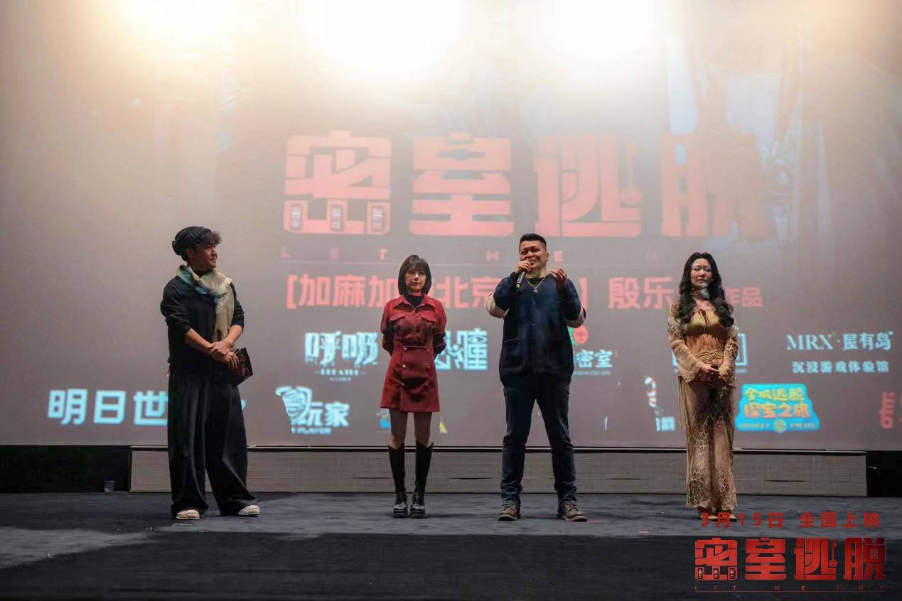 1月13日,电影《密室逃脱》在北京举行了“加麻加辣”特别放映活动。导演兼编剧殷乐,携主演王婷、片尾曲演唱者韩晶如共同出席。此次活动特别邀请了“密瞳实景娱乐”的NPC演员们加入,并扮鬼和观众互动,营造更加刺激过瘾的沉浸式观影体验。映后交流环节,主创大方分享了自己的创作想法,歌手韩晶如现场动情演绎片尾曲《心的密室》。电影《密室逃脱》由殷乐导演、编剧,刘翔(《消失的她》导演)任摄影指导,王婷、何索、祁圣翰、张珊珊、赵儒嫣、王艺博主演。电影《密室逃脱》将于3月15日全国上映。