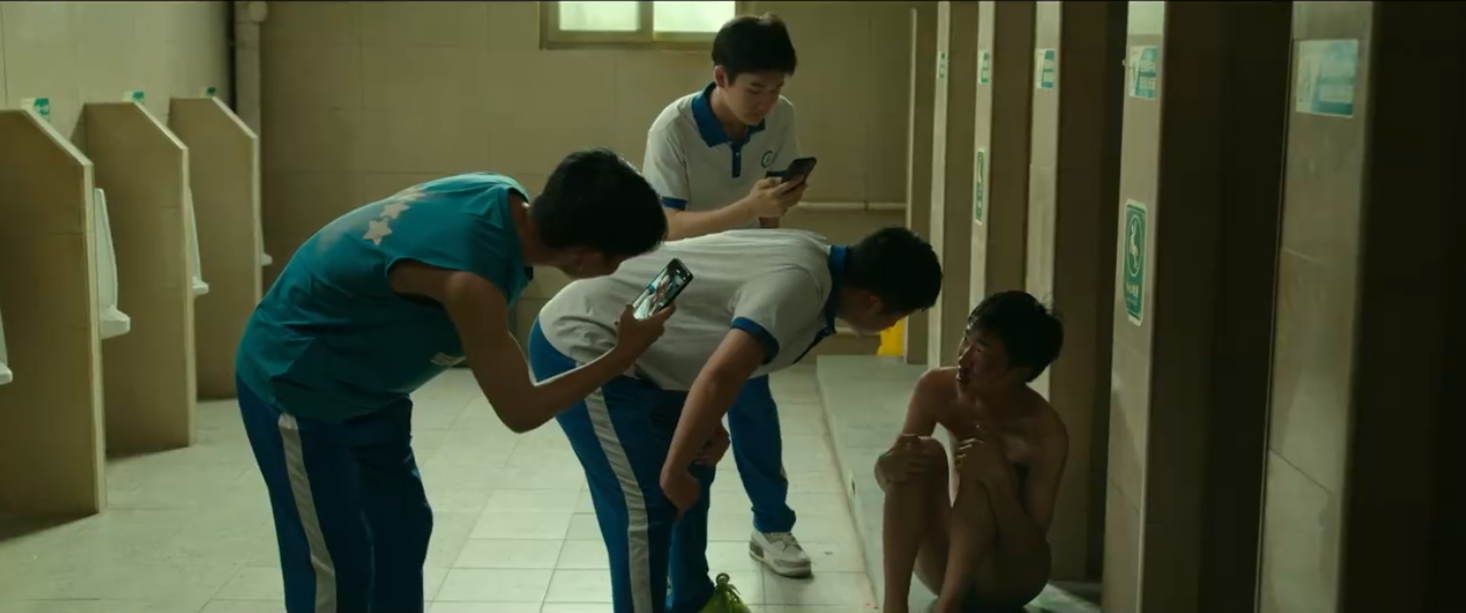 正常来说,电影预告片选的都是足够精彩、能够吸引观众观看欲的段落。《第二十条》第一段是学生在洗手间里被人霸凌、拍照,无论是打光、构图、拍摄手法,都像在校生的习作,太不讲究了。
