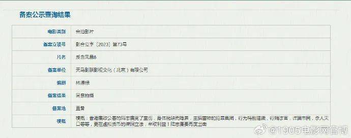 《反贪风暴6》日前正式备案立项,编剧依然是系列导演、编剧林德禄。据梗概介绍,影片将讲述香港廉政公署的陆志廉,身负重伤后再度出击的故事。
