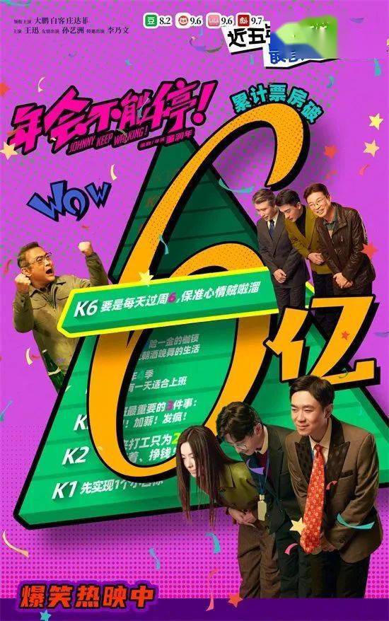 截至1月10日14时51分,由董润年编剧并导演,大鹏、白客、庄达菲领衔主演的《年会不能停!》票房突破6亿。《年会不能停!》讲述打工人携手登上人生巅“疯”的爆笑故事。耿直菜鸟胡建林阴差阳错被调进集团总部,打开新世界大门。影片于2023年12月29日上映,豆瓣评分8.2,是近五年豆瓣最高分国产喜剧。