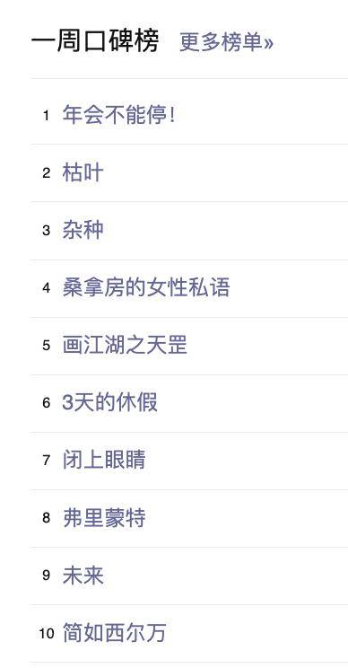 之后,还是例行附上豆瓣电影上周的一周口碑榜榜单: