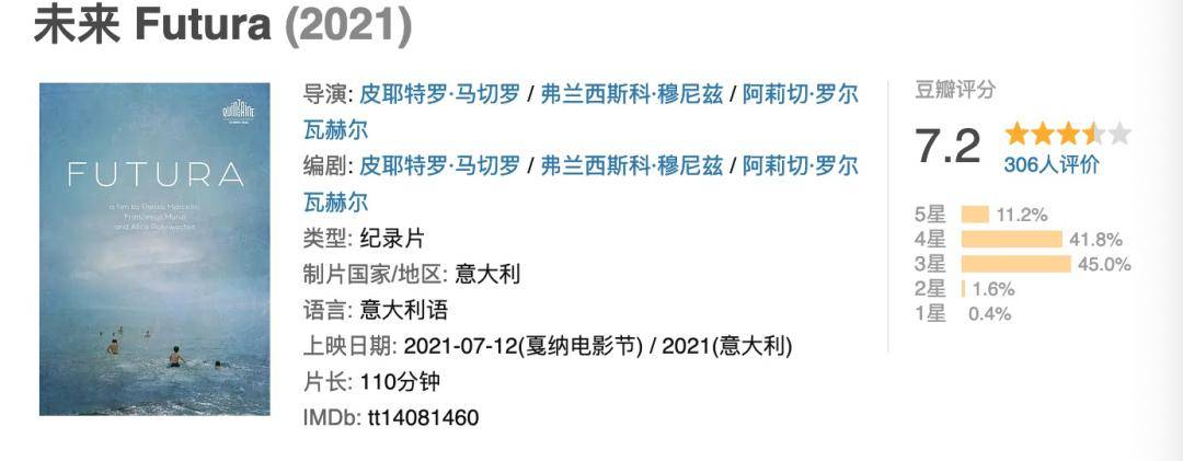 爱丽丝·洛尔瓦彻([幸福的拉扎罗])、皮耶特罗·马切罗([马丁·伊登])、弗兰西斯科·穆尼兹([黑色灵魂])将联合执导纪录片[未来](Futura,暂译)。该纪录片被称为三位导演的“集体调查”,他们在意大利各地旅行,与遇到的青少年对话,询问他们对未来的期望与前景。该纪录片将通过青少年的眼睛来观察意大利。