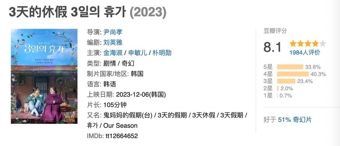 温情奇幻系的一部韩片,将母女情的故事,其实片子本身倒没什么新鲜的,不过,这种亲情相关的电影,总是会有人喜欢的,而且,确实能触动不少观众。
