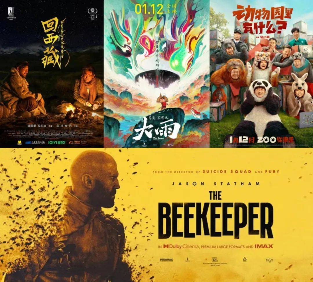 三部国产片分别是《大护法》导演不思凡备受瞩目的奇幻动画新作《大雨》,包贝尔主演的喜剧片《动物园里有什么?》,和陈国星、拉华加执导,宋洋、金巴主演的主旋律传记电影《回西藏》;好莱坞进口片则是杰森·斯坦色主演的动作片《养蜂人》。
