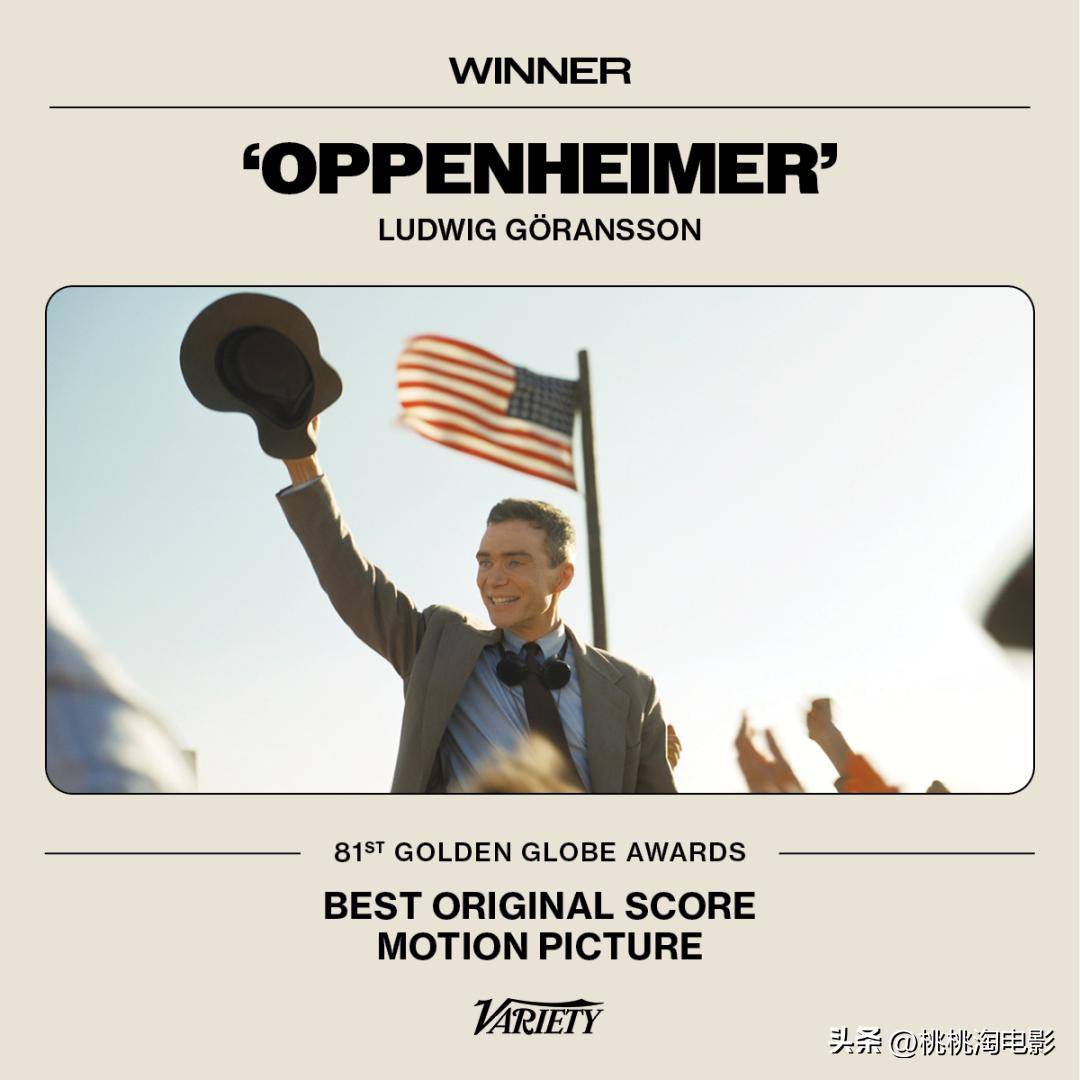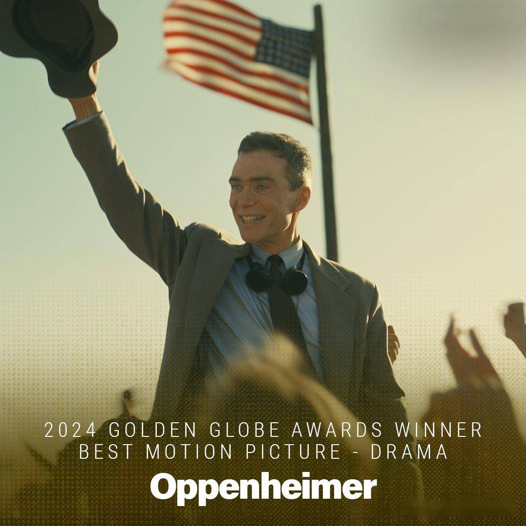 果然,就是《奥本海默》,最佳影片、最佳导演、最佳剧情类男演员、最佳男配角、最佳原创配乐,今年金球大赢家了。