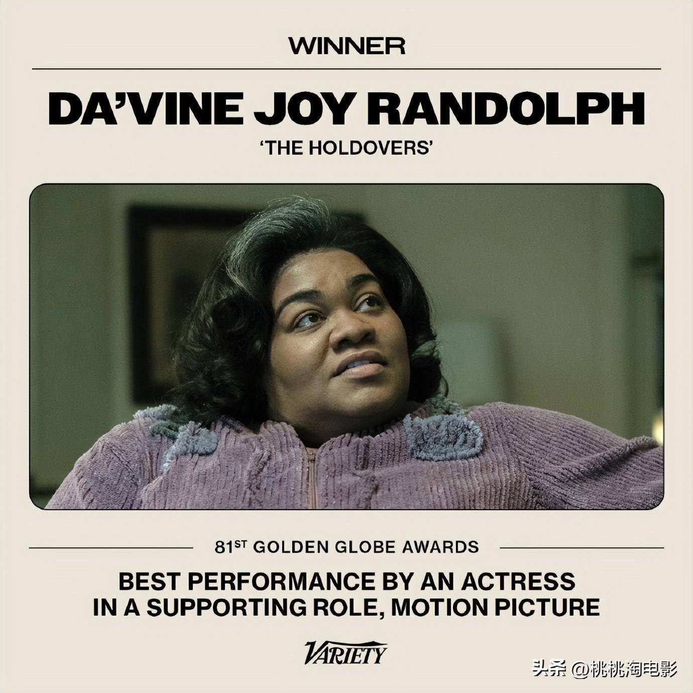 因为从颁奖季前哨战情况来看,《留校联盟》的达明·乔伊·伦道夫显然是最被关注的一位女配角热门人选,最终,女配角也颁给了她,很可能,之后的奥斯卡女配,也是她哦。。
