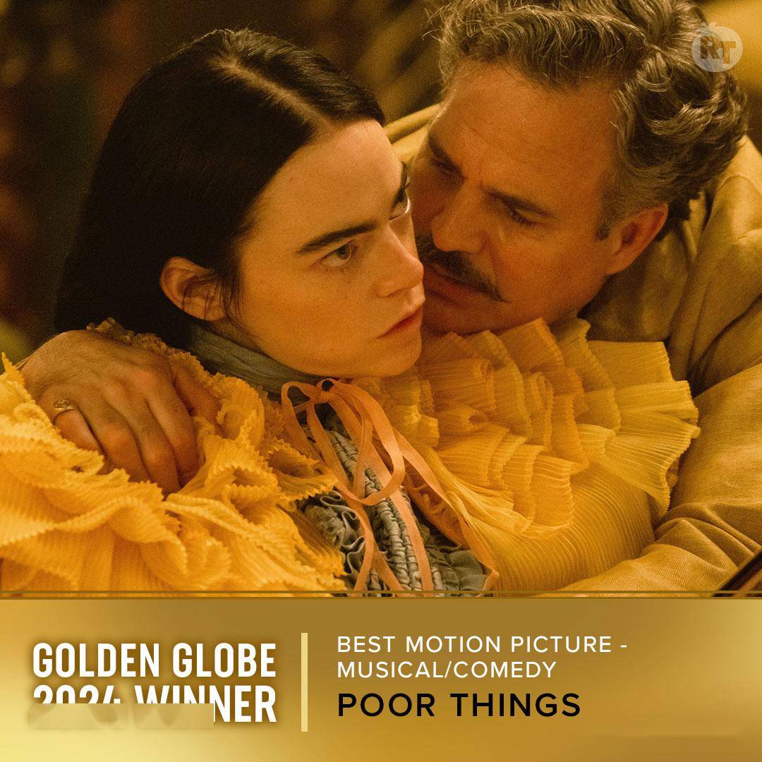 最终,最大的剧情类电影最佳影片,果然给了《奥本海默》。同时,音乐喜剧类最佳影片则由《可怜的东西》获得。