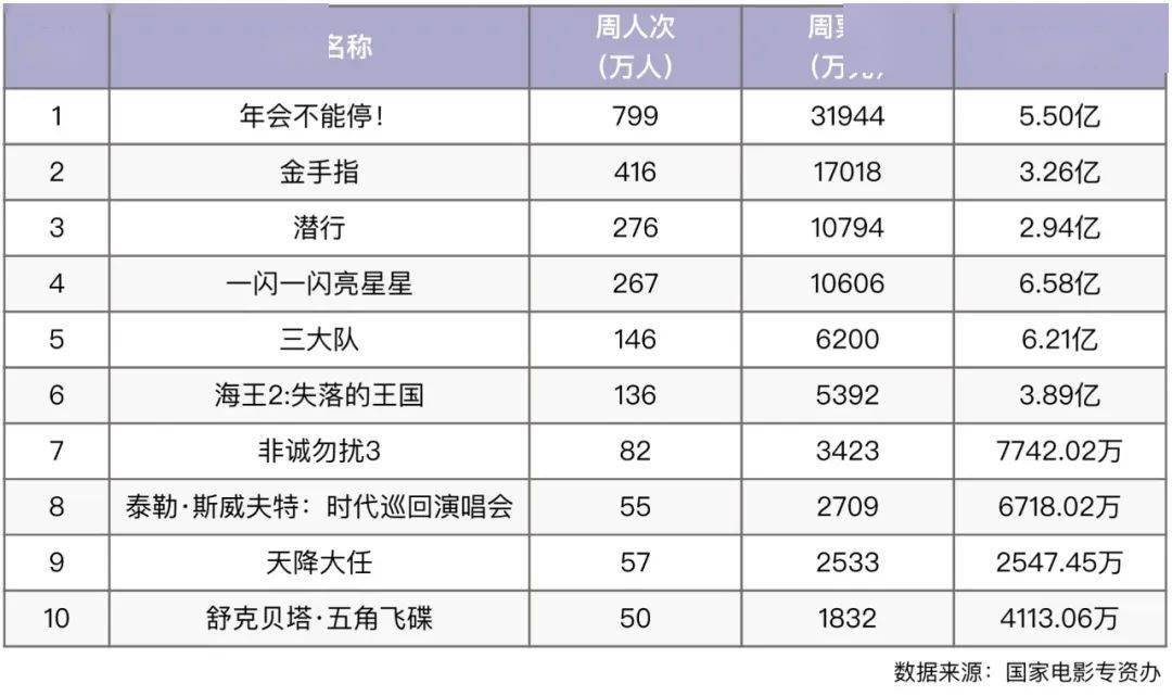 凭借着超强口碑,《年会不能停!》长尾效应显著,上周票房超3.1亿,截至上周末,上映十天该片票房已达5.49亿。票房最高的《一闪一闪亮星星》已超6.5亿,表现不错,但总体看来,元旦档影片体量皆有限,未出现10亿票房量级的影片。