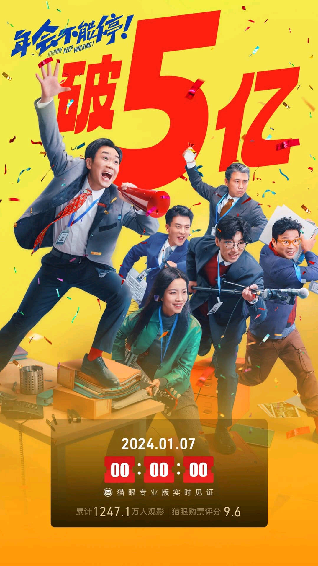 大鹏、白客主演职场喜剧电影《年会不能停!》次周收3.18亿逆袭夺冠,上映10天累计5.55亿。