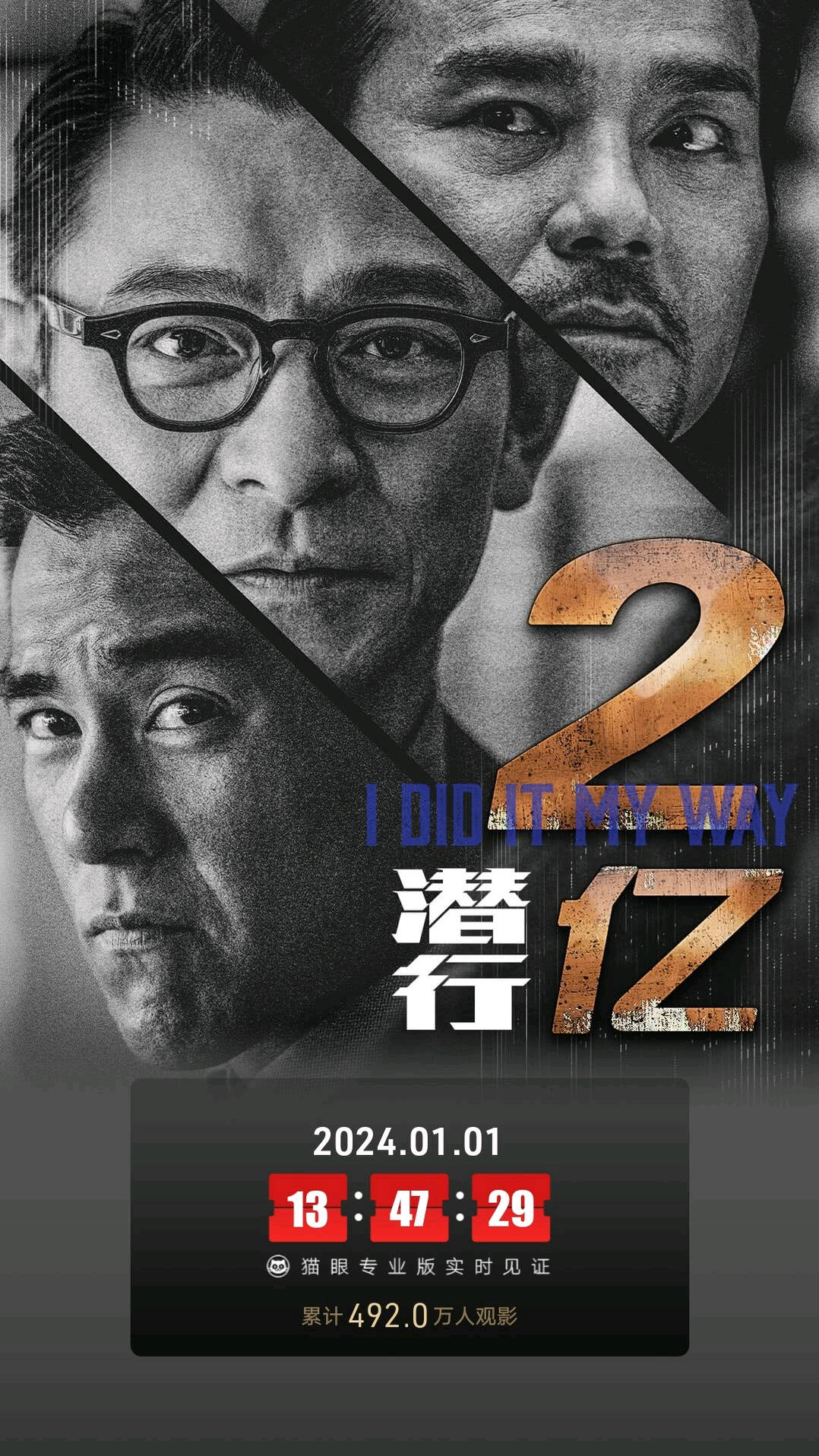 刘德华监制并主演电影《潜行》次周收1.07亿排名第三,上映10天累计2.94亿。