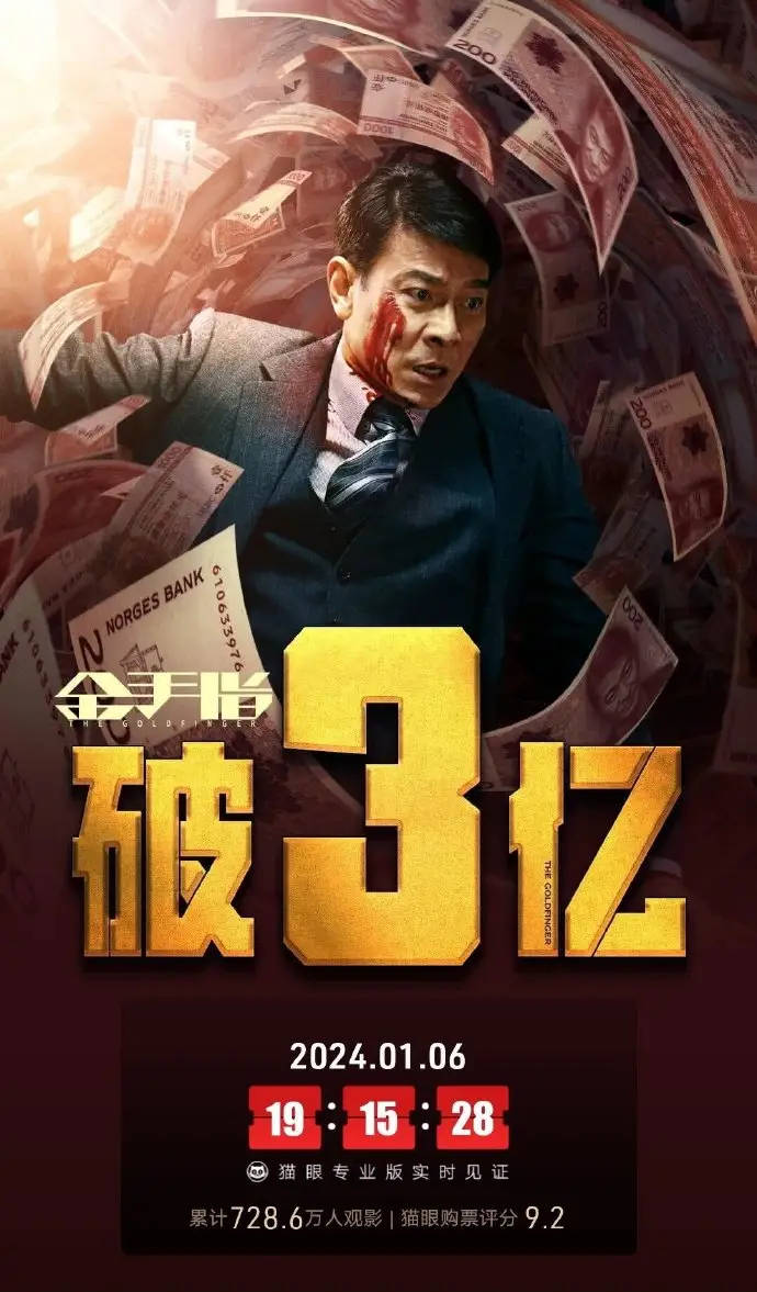 搜狐娱乐讯 据猫眼专业版数据,截至1月6日19时15分,电影 《金手指 》上映8天 ,总票房破3亿,累计728.6万人观影。