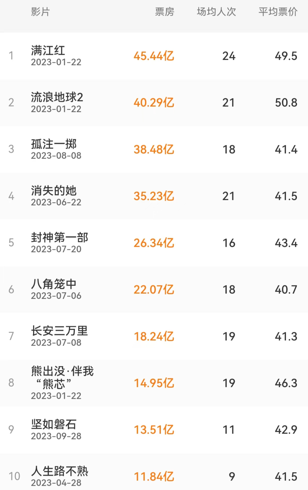 一方面从今年票房前十来看,《满江红》票房领跑,《流浪地球2》《孤注一掷》《消失的她》《封神第一部:朝歌风云》《八角笼中》《长安三万里》《熊出没·伴我“熊芯”》《坚如磐石》《人生路不熟》位列二至十位。电影市场仍然是一个“大片当道”的行业,但这一事实也没能解答那个始终萦绕在行业面前的难题,当年轻观众流失了该怎么办。