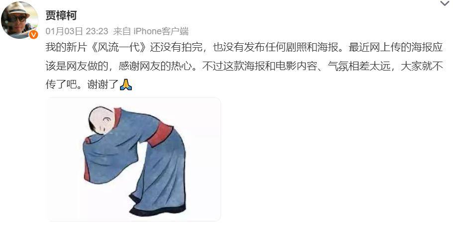 近日,网上流传贾樟柯新片《风流一代》海报,对此贾导回应: