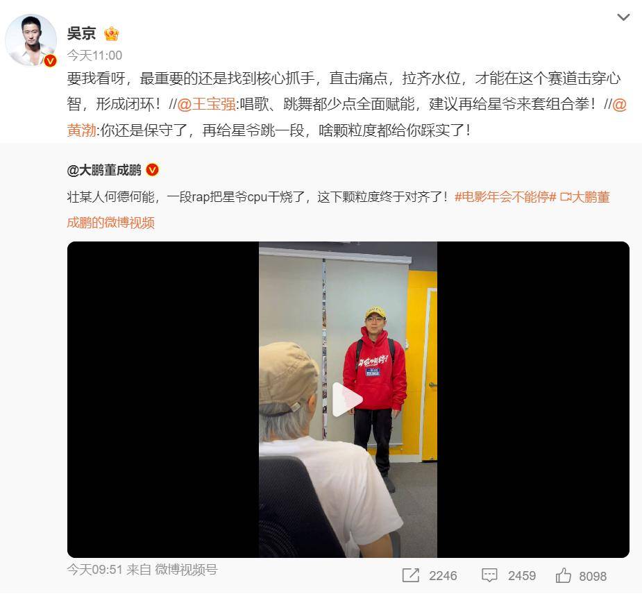 两人的互动被网友直呼“梦幻联动”,不少人也都在期待着两人能有合作的机会。同时,黄渤、王宝强、吴京等人还为大鹏互动打call。