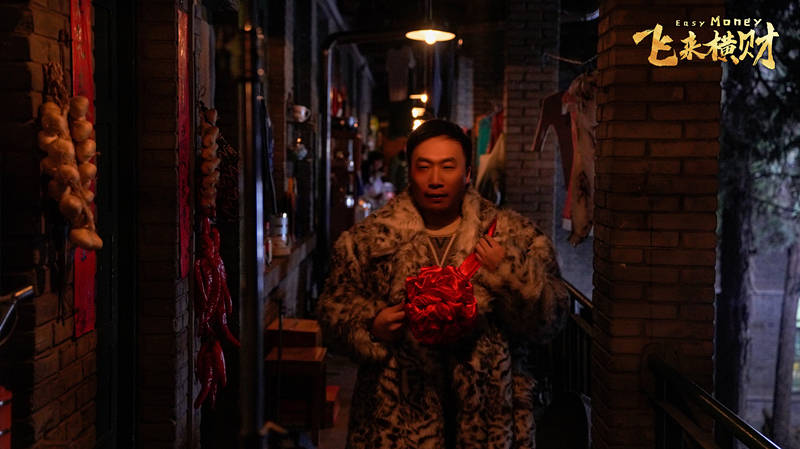 《飞来横财》的故事当中,一开局,便是剧组拍戏的环节。在一场谍战武打的戏份当中,剧组把一箱子钱扔到了大桥下边。歪打正着,这箱子钱砸到了曹瑞饰演的男主角。男主角是一个典型的东北落魄男。这种形象,在以往的东北喜剧当中,大有人在。落魄男喜获一箱子钱,他是中饱私囊呢,还是把它交给叔叔手里边呢?